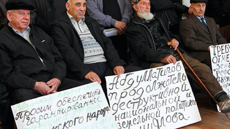 Dağıstan’da yaşayan Kumuklar özerkliğin olmamasını dile getirmeye çalışırken kendilerine ait olan yerleşim ve hayvancılık arazilerinin yerel hükümet tarafından Avar ve Lak olan dağlı Dağıstanlılara dağıtılmasından şikayetçi. Mahaçkale civarı maddi değeri yüksek olan yerleşime uygun toprakların Kumuklara sorulmadan dağlık bölgelerden gelenlere dağıtılması geniş toprak kavgalarına ve Kumukların protestolarına neden oluyor. Bu toprakların kendilerine ait olduğunu Dağıstan’ın kuruluşunda kendilerinin ve Türklerin önemini vurgulamayı amaçlayan Kumuklar burada Kafkas Ordusu’na ait anıt da inşa etti. Söz konusu anıt ilk önce yıkılmak istendi ancak daha sonra üstünde yazı olan tabela sökülerek başka bir tabela ile değiştirildi. Kumukların bu durumu protestosu ise sonuçsuz kaldı.