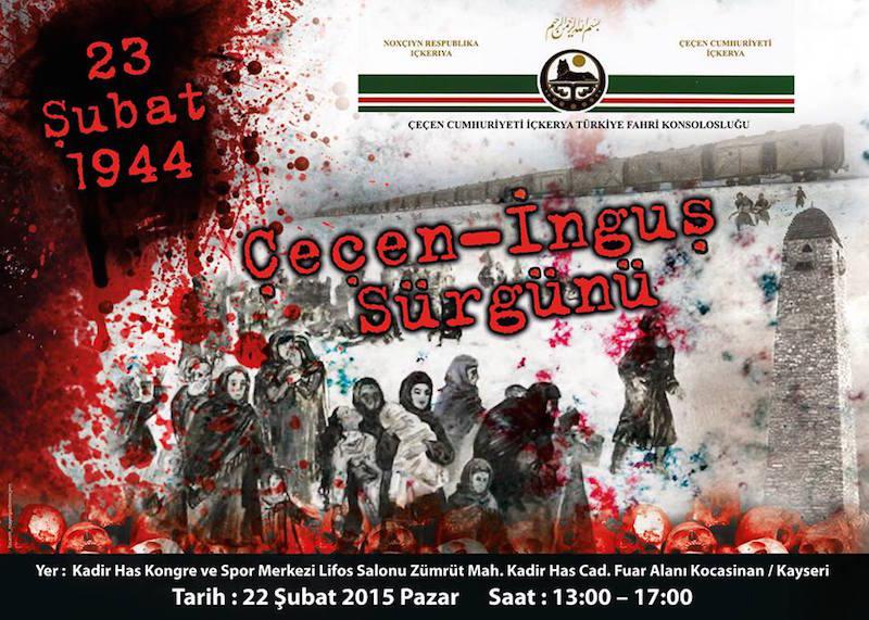 "23 Şubat 1944 Çeçen-İnguş halkının tarihindeki en acımasız günlerden birisini simgelemektedir. Sovyet lideri Joseph Stalin‘in doğrudan emri ile tüm Çeçen-İnguş halkı kadın-erkek, yaşlı-çocuk ayrımı yapılmaksızın sadece birkaç gün içerisinde tevkif edildi ve silah zoruyla hayvan vagonlarına bindirilerek Sibirya ve Orta Asya’ya doğru sürgüne gönderildi. Yolculuk sırasında ve sürgündeki yaşam koşullarında Çeçen-İnguş nüfusunun yarısından fazlası hayatını kaybetti ve ancak 1957 yılından sonra tarihsel anavatanlarına dönebildi.