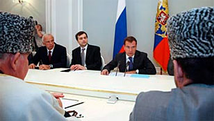 Haber Medvedev müftülerle görüştü: “Rusların Kafkasya’ya dönmesine yardım edin” 6 Temmuz 2011, 12:01 Nalçik/Ajans Kafkas - Kabardey-Balkar Cumhuriyetinin başkenti Nalçik’te dün Rusya müftüleri ile görüşen Rusya Federasyonu Devlet Başkanı Dmitri...
