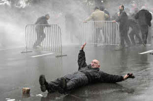 Haber Mişa fandarast! 3 Kasım 2007, 06:47 Gürcistan'da ABD destekli Mihail Saakaşvili'ye 2003'te devlet başkanlığı yolunu açan 'Gül Devrimi'nin neferleri yeni devrim provası için meydana indi. Ama bu kez...