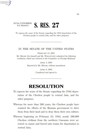 Ayrıca Avrupa Parlamentosu’nun 2004 yılında 23 Şubat’ı soykırım olarak tanıdığı ve Amerika Birleşik Devletleri Senatosu’nun da 2001 yılında 23 Şubat’ın sürgün olarak anılması ile ilgili kararı da vardır.