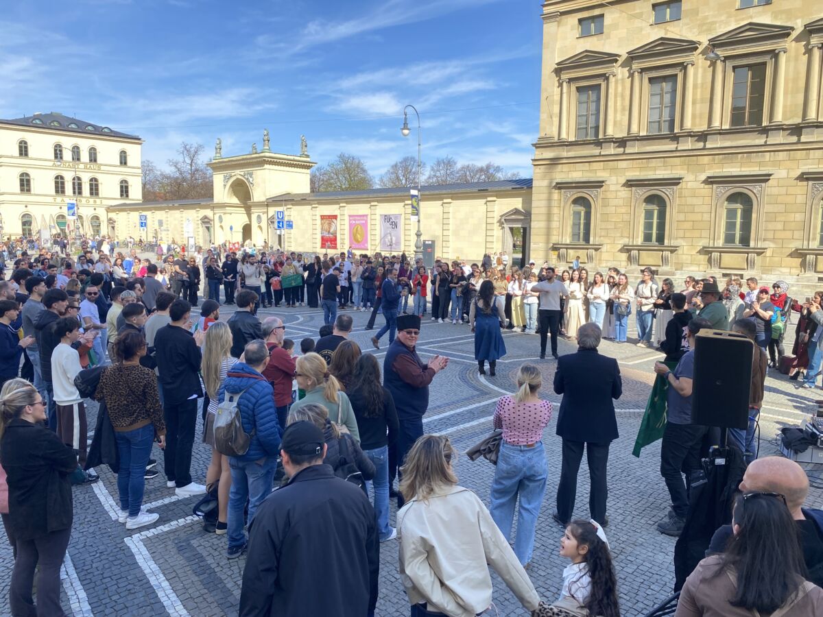 Daha sonra Münih merkezinde, meydanda derneğin kapanış gösterisine iştirak ettik. Çerkesler görünür olmak için meydanlarda bu tip etkinlikler yapıyor. Etki de ediyor bence. Hem de insanlar farklı kültürleri yerinde görmüş oluyor. Sonra arkadan bir ses: “Abazalar işi biliyor” diyor. “Abazalar ortamı neşelendiriyor” diyor. Evet, ben de “Doğrudur” diyorum 🙂
