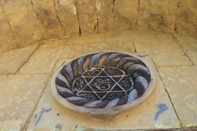 Eski bir evin kapısı. Bu resim çekilmeden birkaç gün önce, şüpheli birisi üzerinde arapça yazılar bulunan taşları çaldı. Dokunun bozulması ve eserin orjinalliğinin bozulmasından dolayı hırsızlar hakkında bilgi verenlere 50 bin ruble ödül verileceği ilan edilmişti.